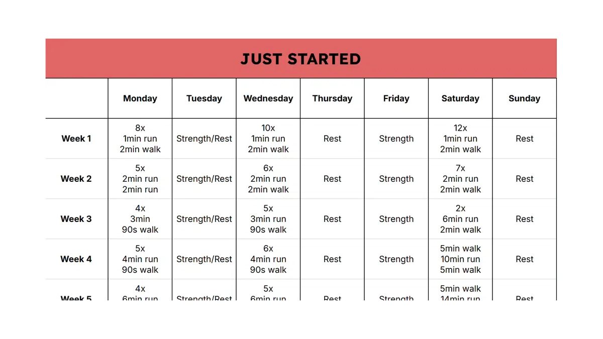 Clear and simple 10-week plan (instant download on purchase. Keep it forever)